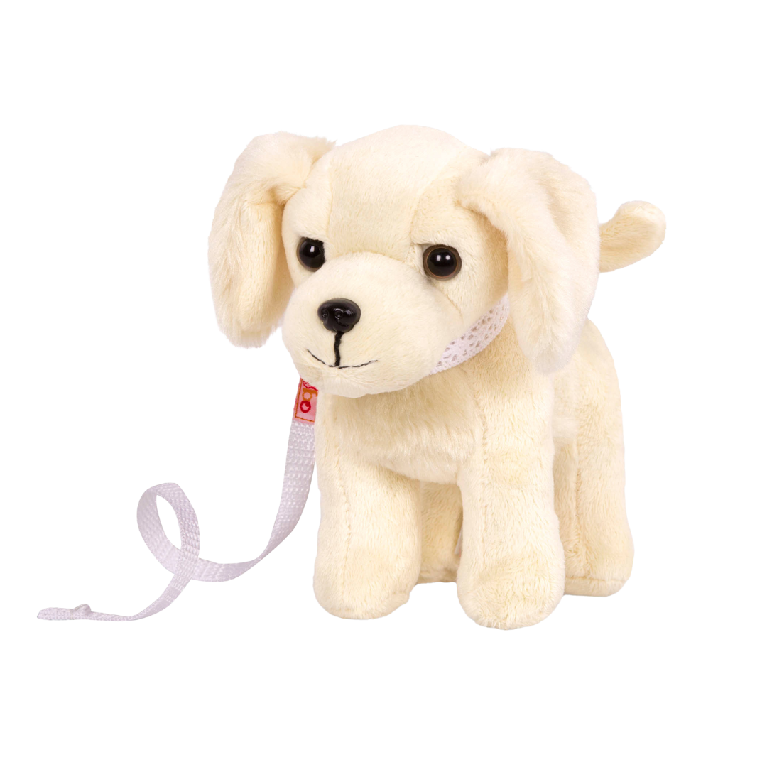 Surprise your dolls with a best furry friend â an Our Generation Posable Golden Retriever! This sweet, 15 cm dog plush has super soft fur and loves being pet behind the ears. It has posable legs, so your puppy can sit, stretch, lie down, and shake a paw! Is it time for a walk around the neighborhood? The detachable leash easily clips to the collar to keep your loyal pal by your doll's side as you explore! (Dolls sold separately)